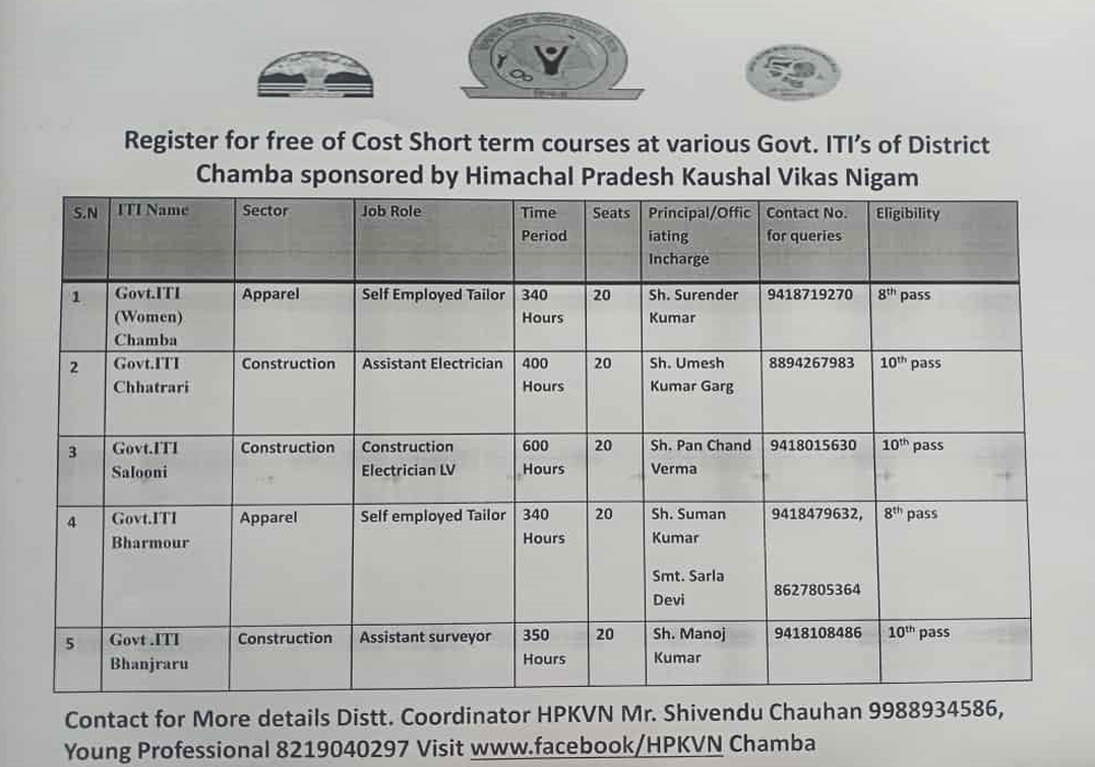 Industrial Training Institute Chamba is a prime institute imparting technical education and situated in the lap of nature and Shiv Bhumi Chamba District. This institute is established in the year of 1964 under the aegis of DGE&T.